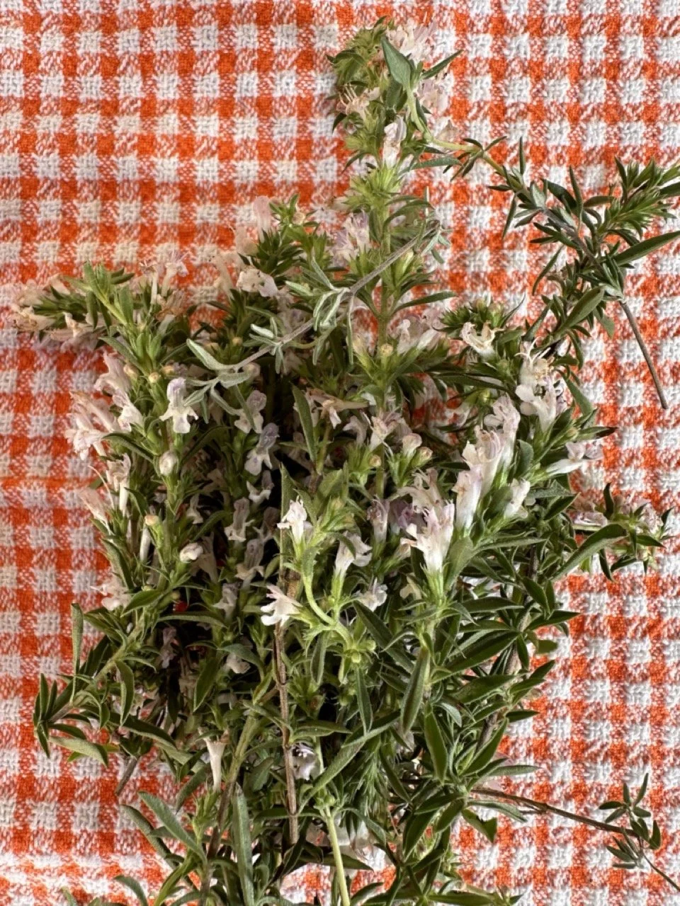 Now that we’ve said our hellos, I’d love to introduce you to my latest herbal friend, which I spotted recently while in the south of France on a hike in Gréolières. I knew it wasn’t thyme as that blooms in the region in May and the flowers are purple, but it was a lookalike and appeared to be a close relative. After fiddling with a wildflower app, I discovered I was staring at Winter Savory.